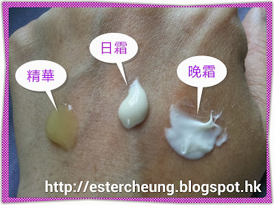 日間接著塗抹日霜,白色乳液狀質感,不太濃稠,很好推,清爽不黏膩